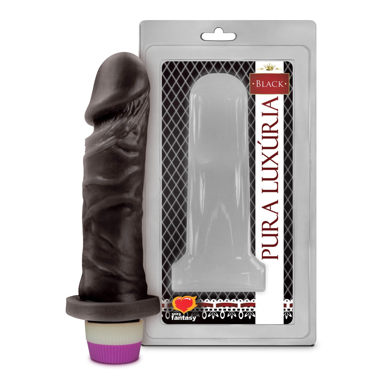 Prótese em forma de pênis com veias salientes para penetração e vibrador.
