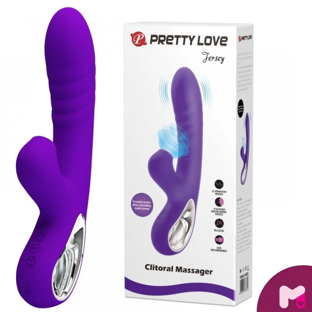 Vibrador Recarregável com 12 Vibrações e 4 Níveis de Sucção – Jersey Vibrador Recarregável ao Estilo em Silicone Cirúrgico com 12 Vibrações na ponta e 4 Níveis de Sucção no estimulador de Clitóris